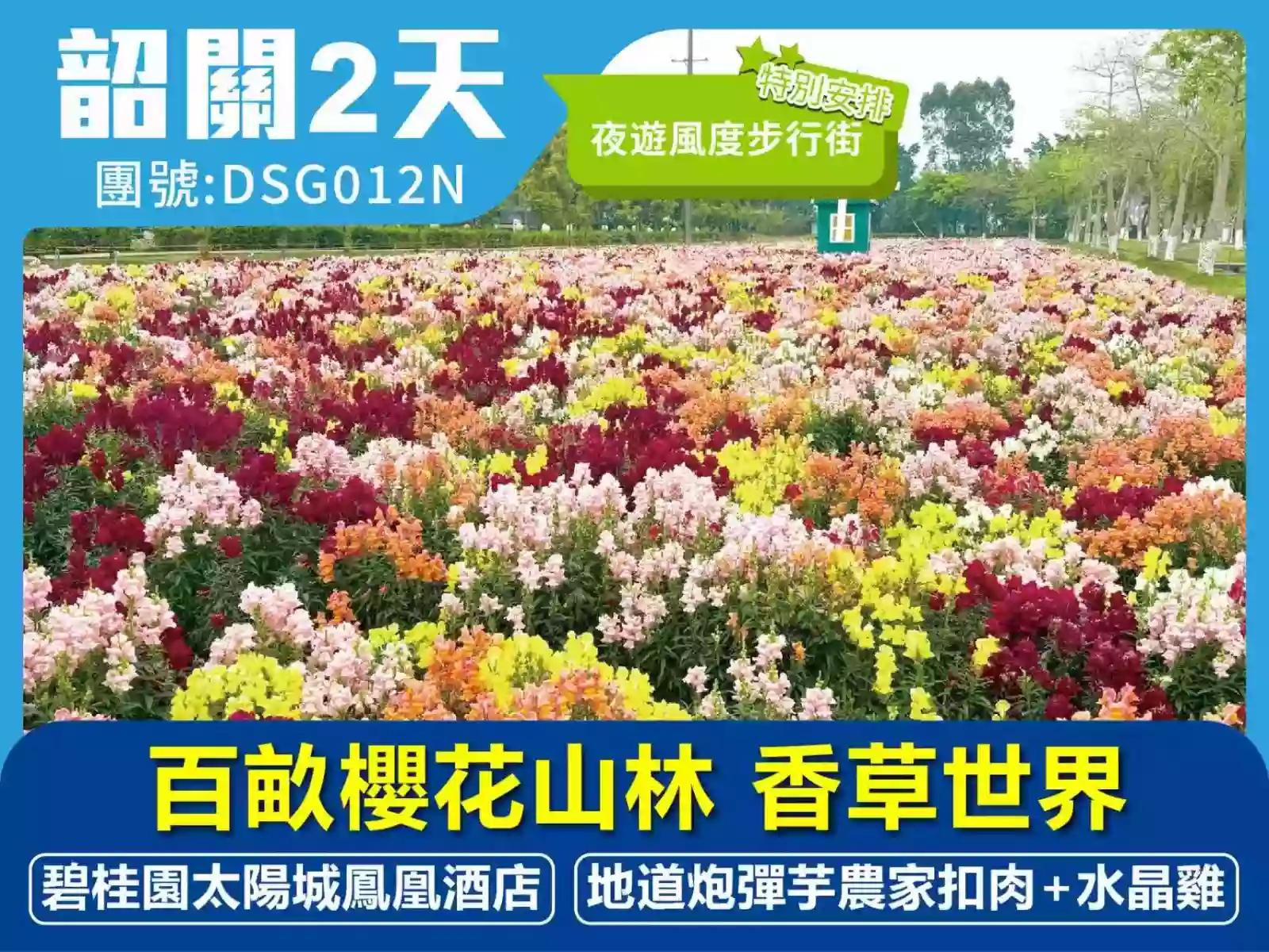 百畝櫻花山林 香草世界 品嚐當地味道【炮彈芋農家扣肉、五彩山珍蒸走地雞】韶關五星標準《碧桂園太陽城鳳凰酒店》 韶關2天