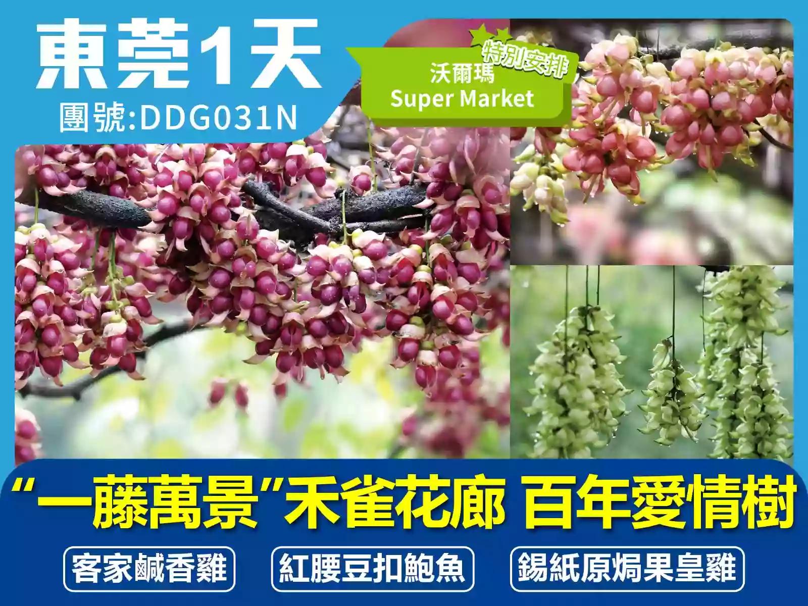 “一藤萬景”禾雀花廊 百年愛情樹 品嚐【錫紙原焗果皇雞】【客家鹹香雞+紅腰豆扣鮑魚】東莞1天