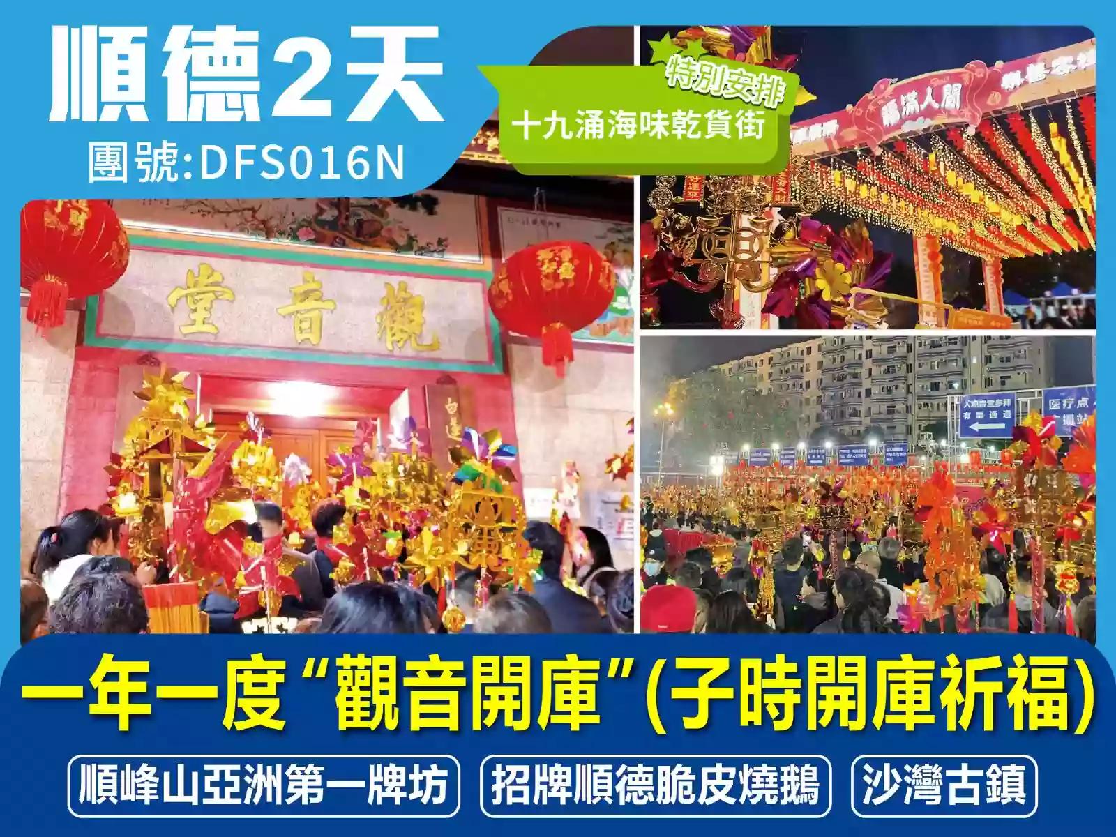 一年一度“觀音開庫”(子時開庫祈福)順峰攬勝賞春 歎招牌順德脆皮燒鵝】順德2天