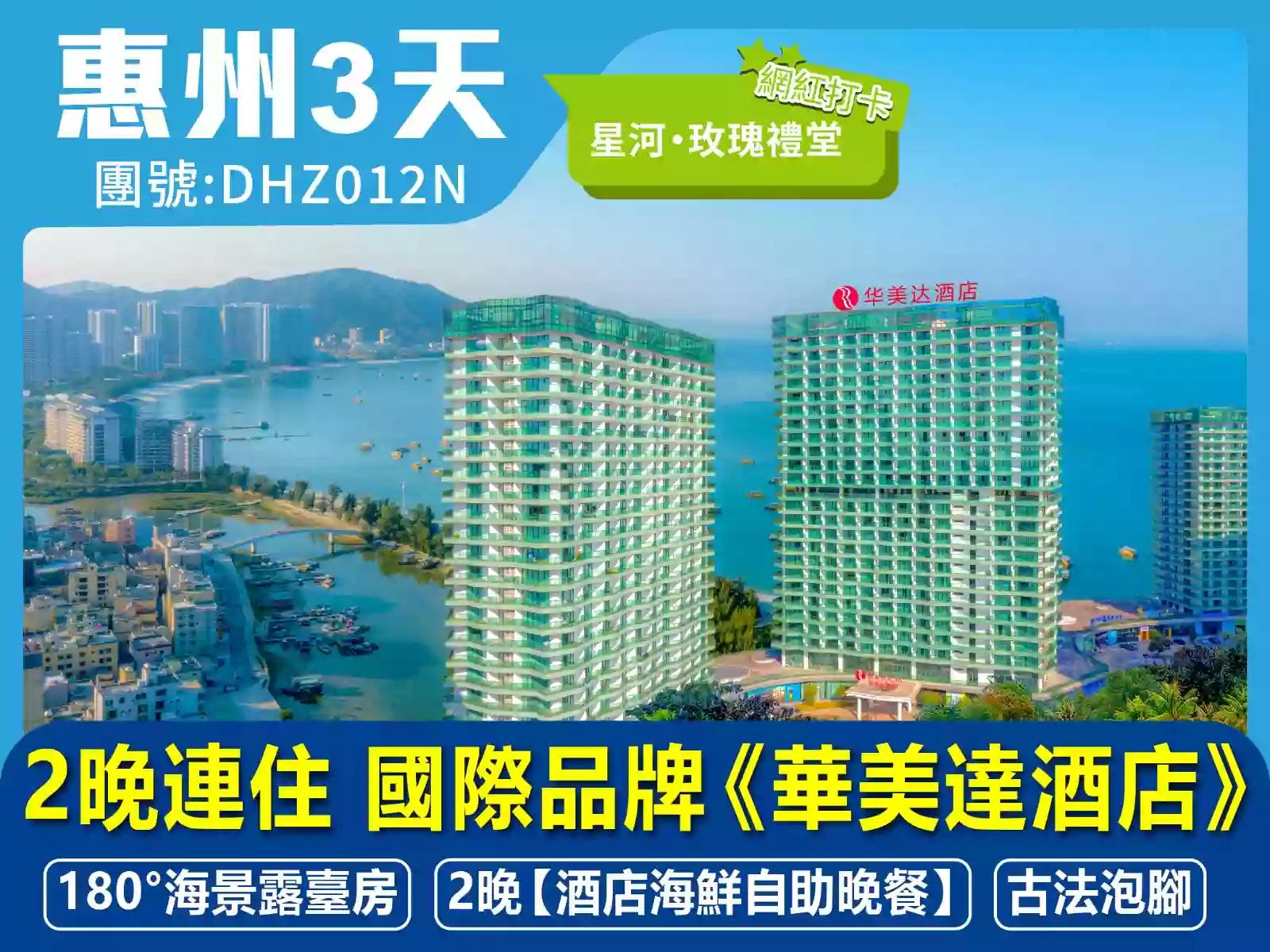 【Hea酒店】2晚連住 國際品牌 惠東《巽寮灣華美達酒店》海景露臺房 歎2晚【酒店海鮮自助晚餐】 醉美漁港、雙魚島自遊行 特別安排古法泡腳 3天