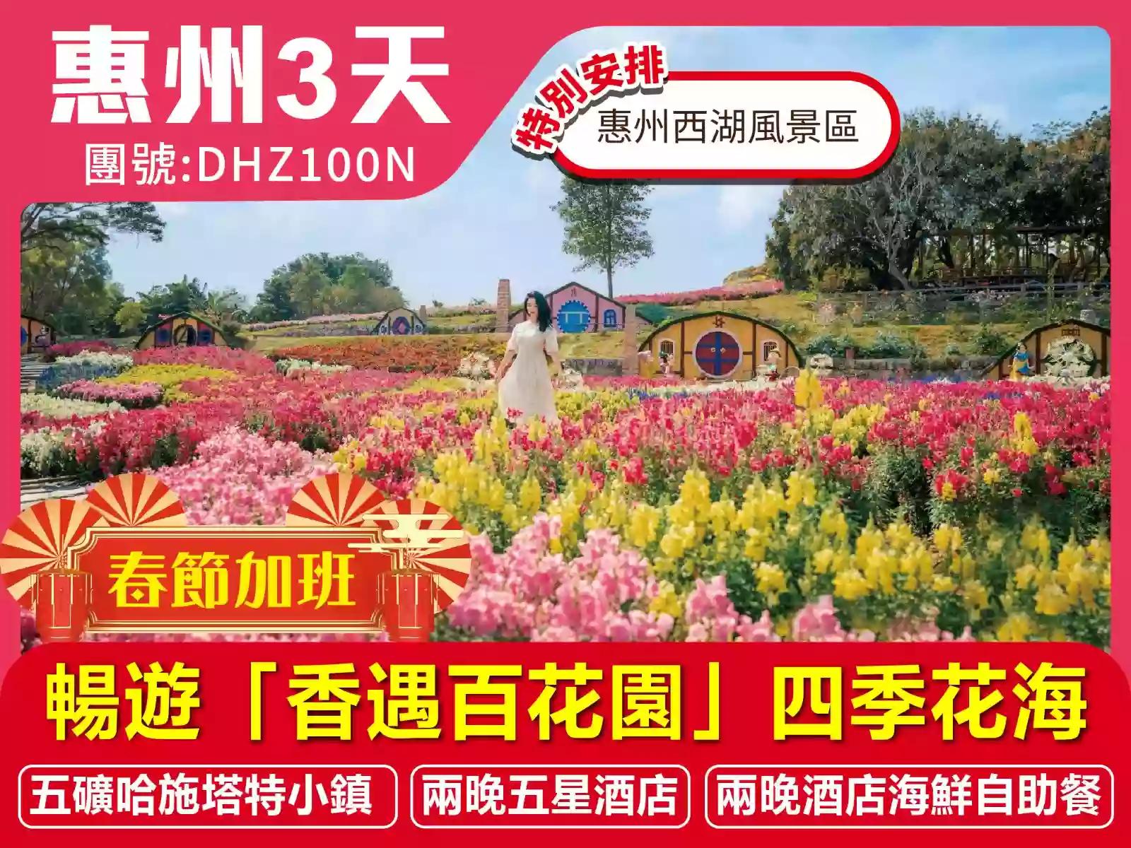 【春節加班線】重本包入場 暢遊「香遇百花園」四季花海、"奧地利風情"五礦哈施塔特小鎮 入住兩晚五星標準酒店 歎兩晚【酒店海鮮自助晚餐】 惠州東莞3天