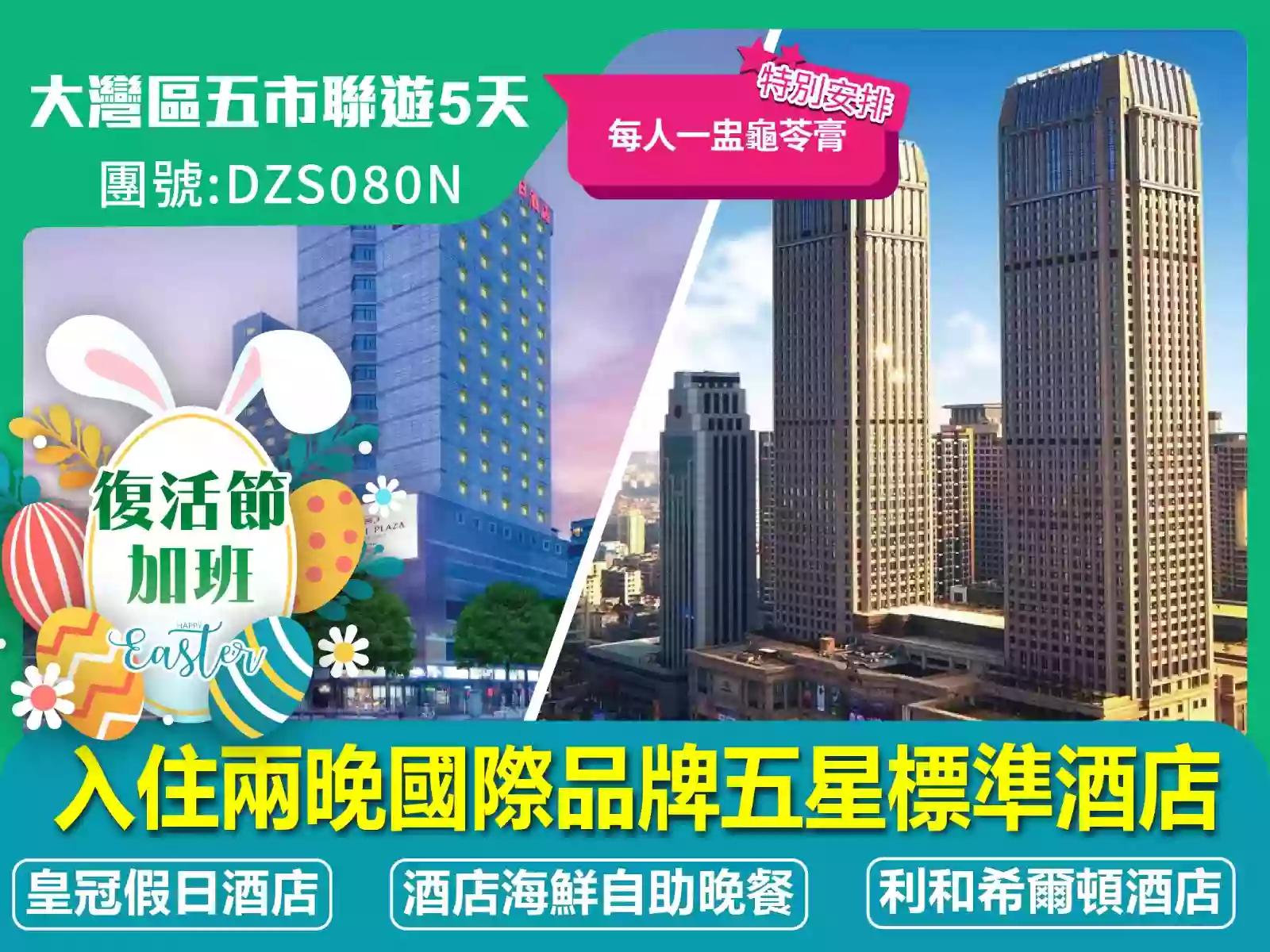 【復活節加班】重本包入場「卡魯冰雪世界」暢玩娛雪區3小時、“廣州夜遊天花板”「船遊珠江」、奇幻海洋公園 入住兩晚國際品牌五星標準酒店 歎兩晚【酒店海鮮自助晚餐】 大灣區五市聯遊5天
