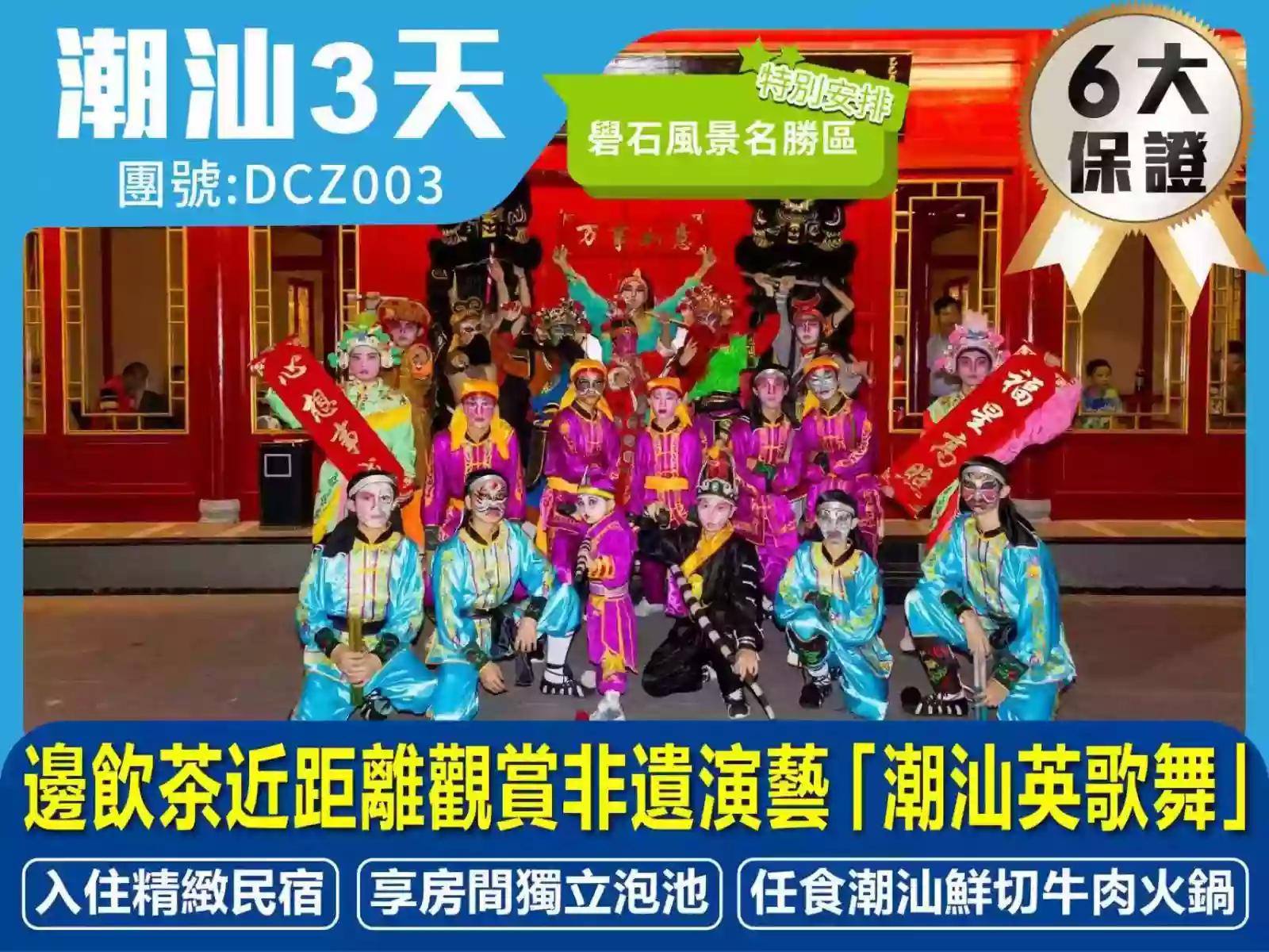 【潮汕深度遊】邊飲茶近距離觀賞 非遺演藝「潮汕英歌舞」入住精緻民宿 任食潮汕鮮切牛肉火鍋 潮州《三潮溫泉小鎮·酒店》尊享房間獨立泡池 3天