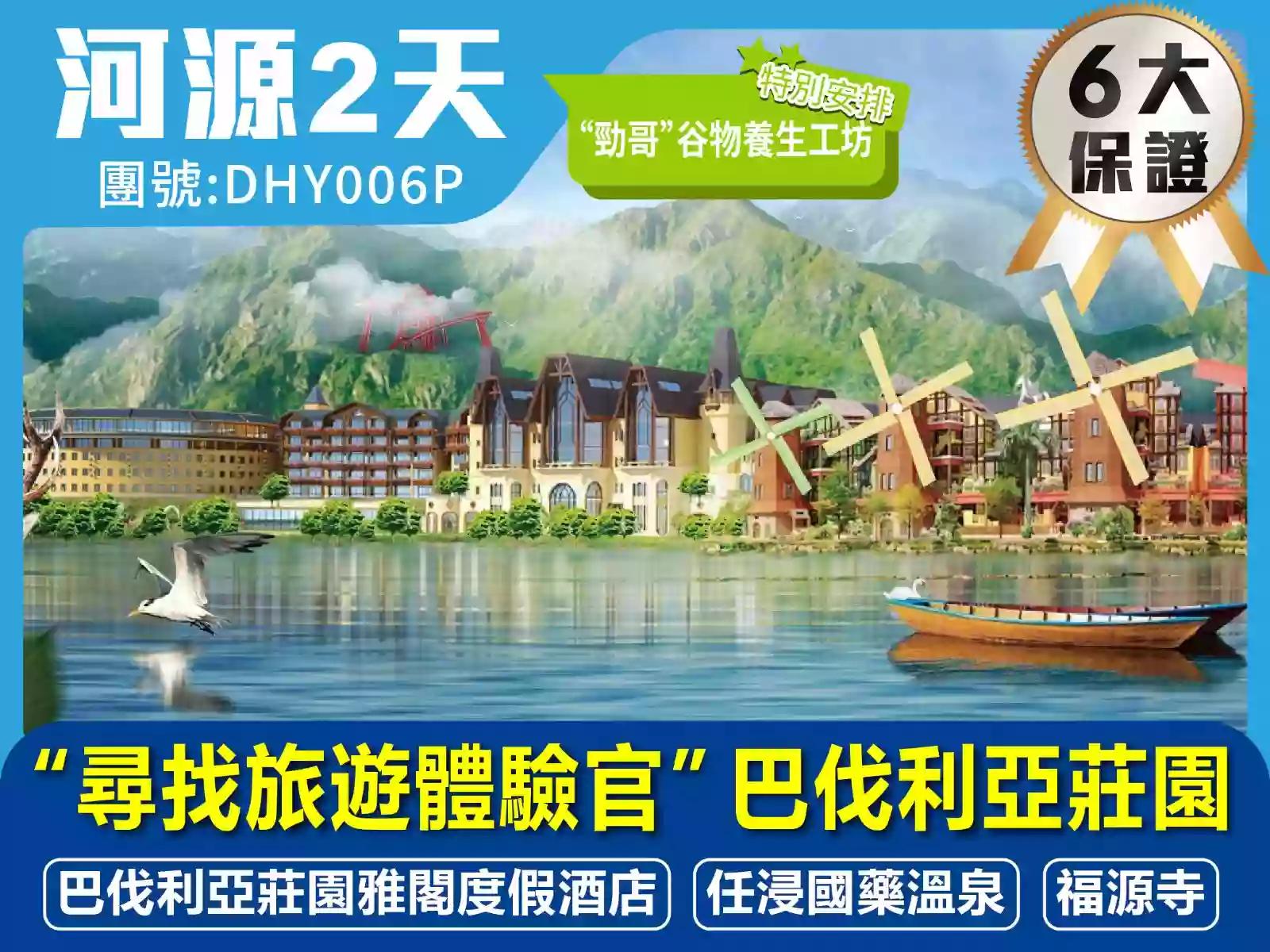 “尋找旅遊體驗官” 巴伐利亞莊園 無限任浸國藥溫泉 “土樓建築風格”福源寺 入住景區《巴伐利亞莊園雅閣度假酒店》河源2天