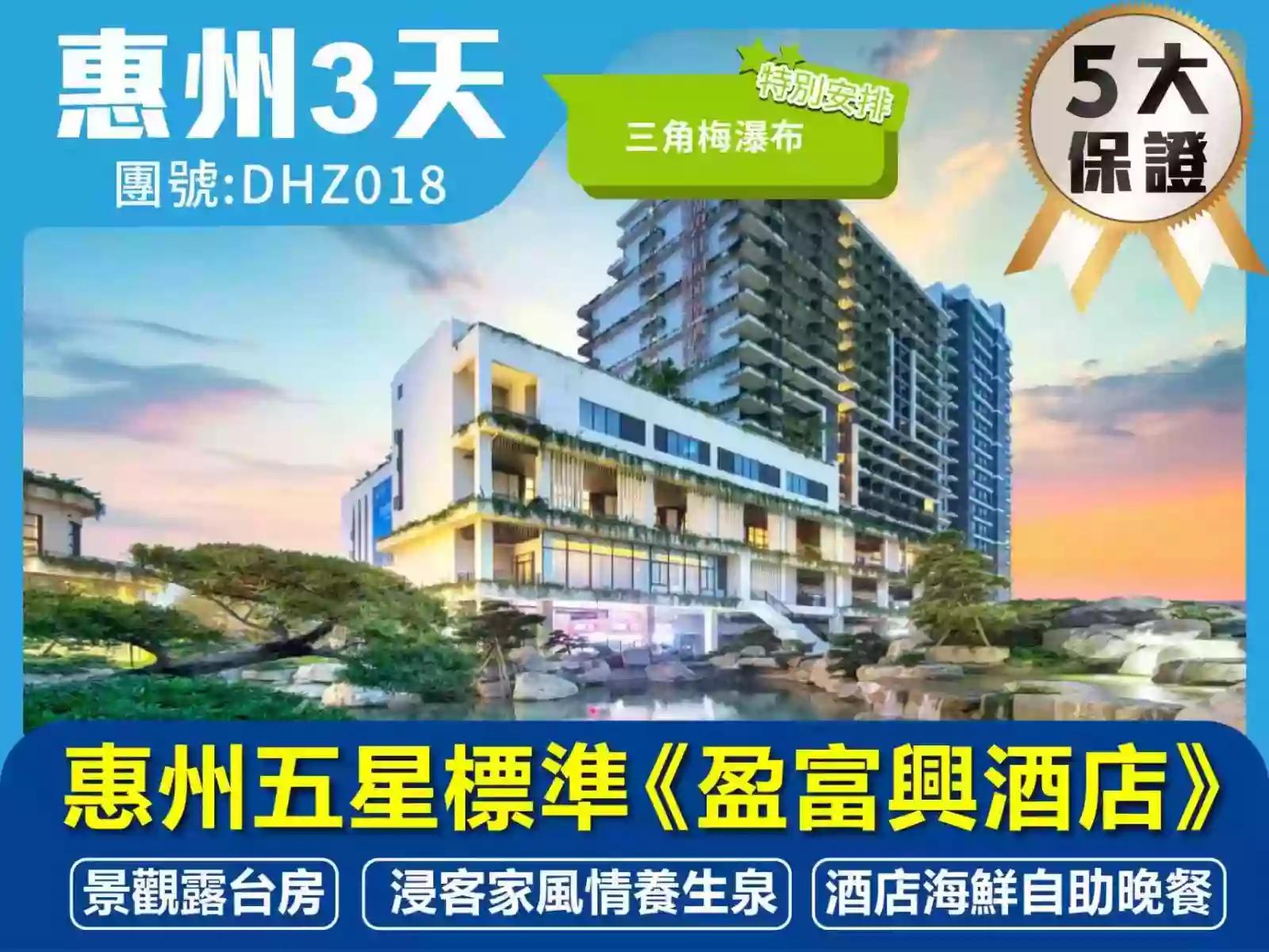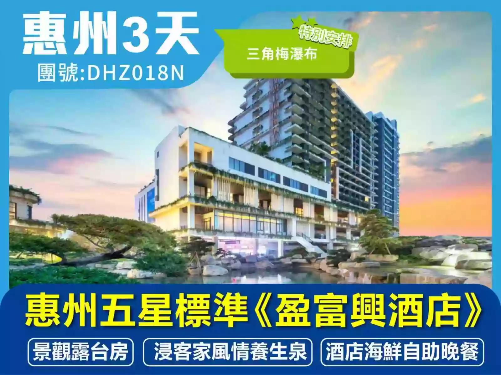 【浸溫泉歎自助餐】惠州五星標準《盈富興酒店》入住景觀露台房 浸客家風情養生泉 歎【酒店海鮮自助晚餐】觀浪漫花瀑 河源惠州3天