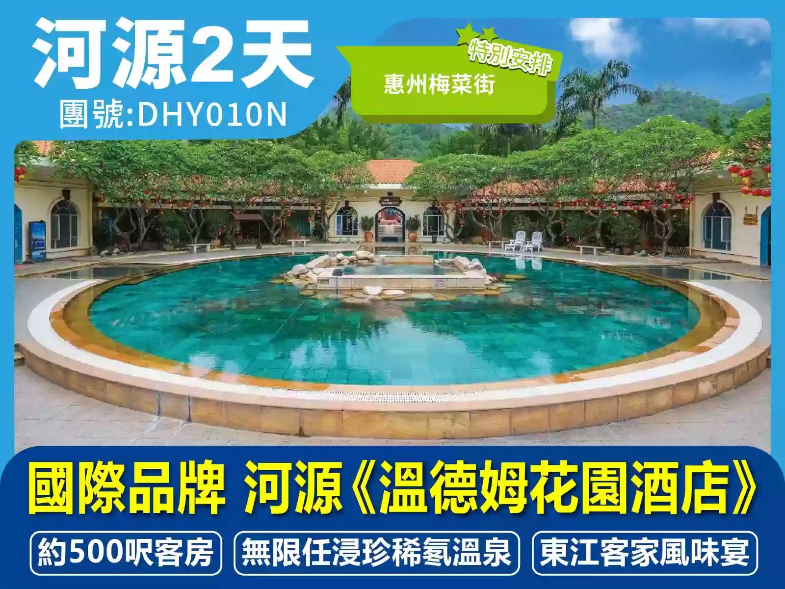 【浸溫泉】國際品牌 河源《溫德姆花園酒店》約500呎客房 無限任浸珍稀氡溫泉 2天