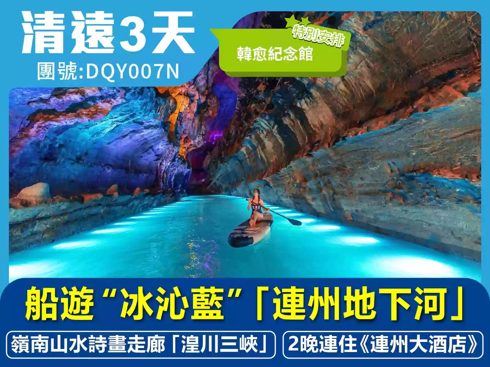 【賞美景】 船遊“冰沁藍”「連州地下河」 嶺南山水詩畫走廊「湟川三峽」 2晚連住鬧市中心 全新裝修清遠《連州大酒店》3天