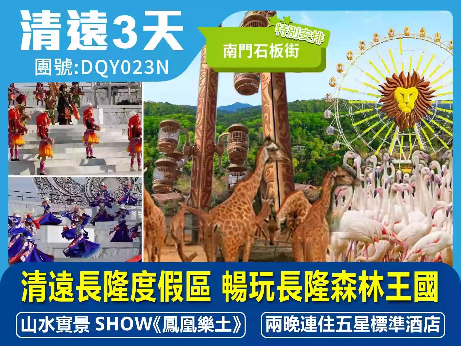 清遠長隆度假區 暢玩長隆森林王國 觀賞少數民族《鳳凰樂土》山水實景SHOW 兩晚連住五星標準《恆大酒店》 清遠3天