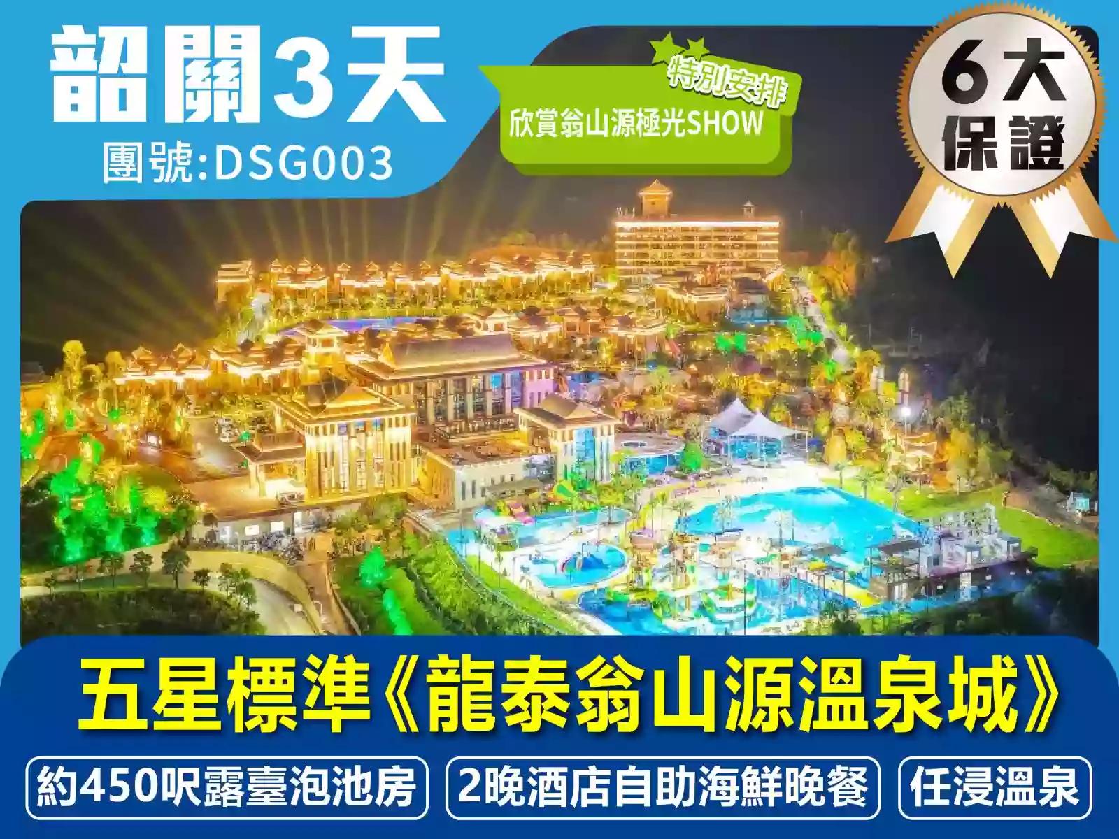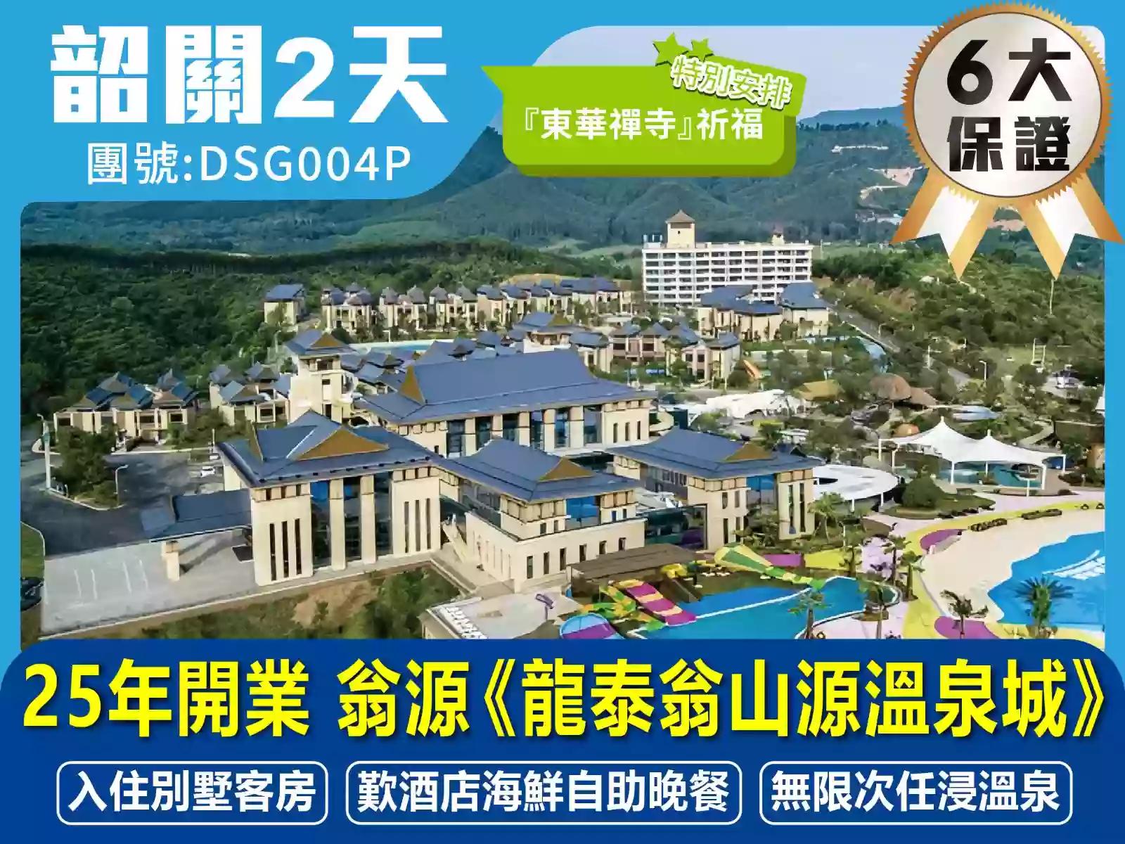 【Hea酒店浸溫泉】2025年全新開業 翁源《龍泰翁山源溫泉城》入住別墅客房 歎酒店海鮮自助晚餐 無限次任浸溫泉 2天