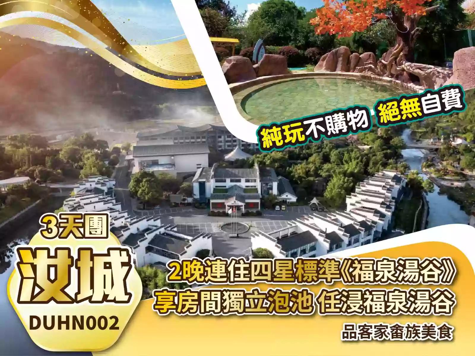 兩晚連住汝城四星標準《福泉湯谷》尊享房間獨立泡池 任浸福泉湯谷 品客家畬族味道 汝城3天