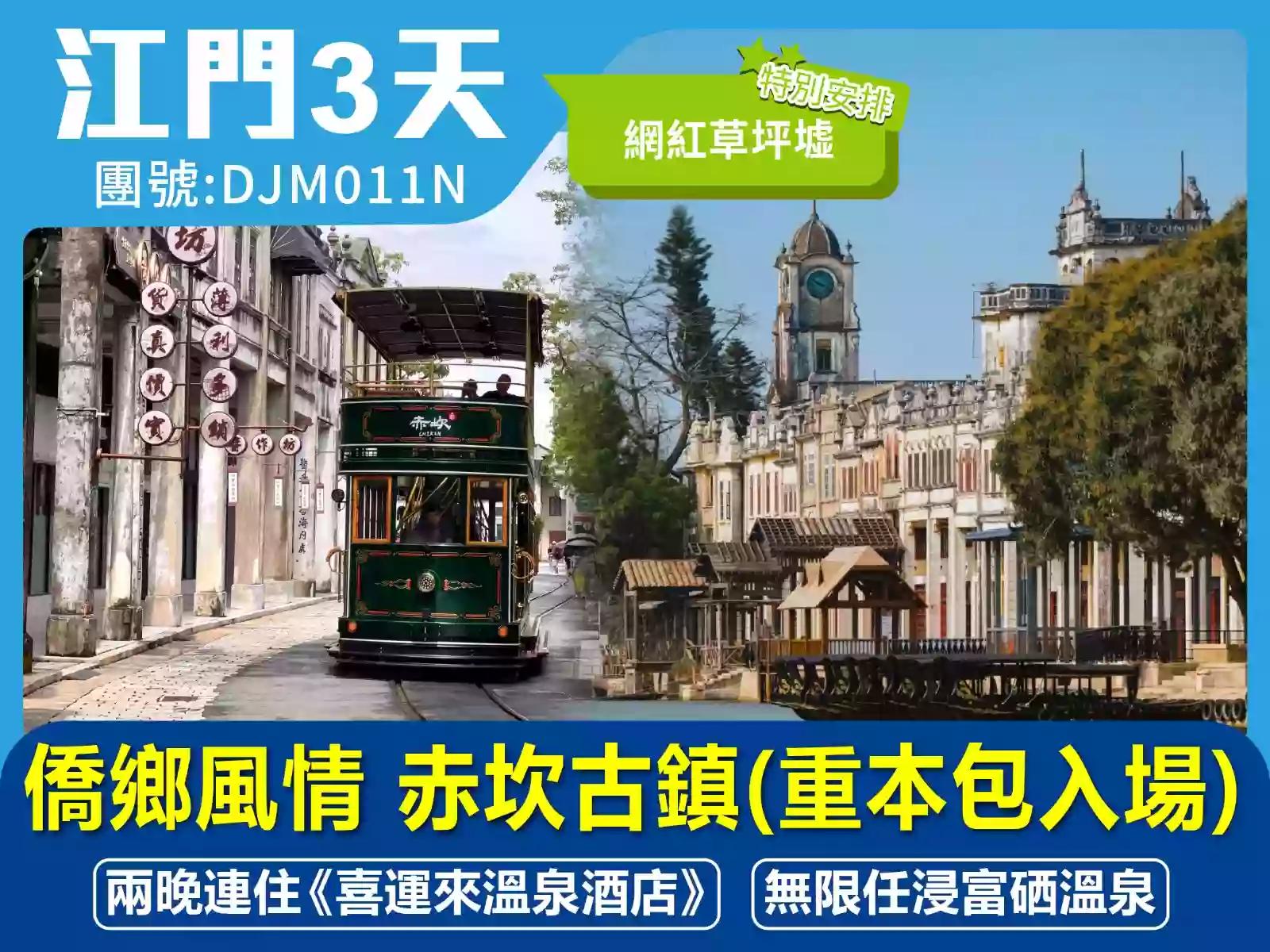 僑鄉風情 赤坎古鎮(重本包入場)兩晚連住臺山《喜運來溫泉酒店》任浸富硒溫泉 臺山3天