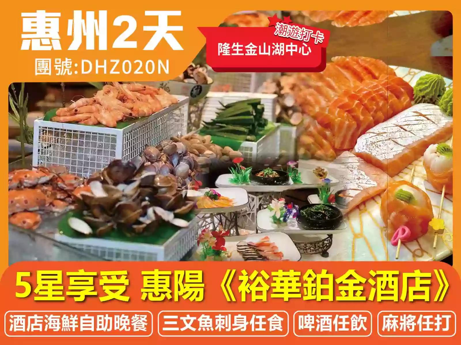【Hea酒店】5星享受 惠陽《裕華鉑金酒店》豪歎【酒店海鮮自助晚餐】(三文魚刺身任食、啤酒任飲)“長城大作戰”自動麻將任打 2天