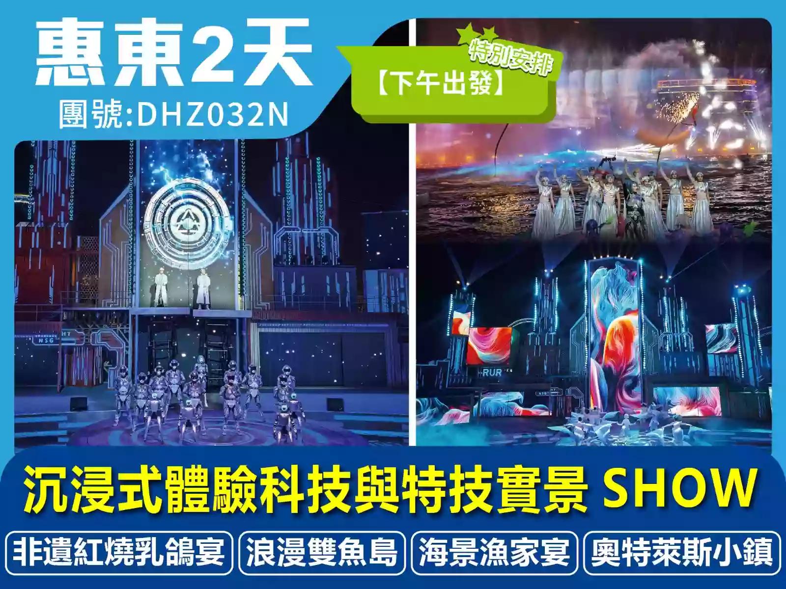 【下午出發】重本包入場 沉浸式體驗科技與特技實景SHOW「星海紀元」 入住惠東國際品牌酒店180°海景露台房 品【非遺紅燒乳鴿、海景漁家宴】 2天